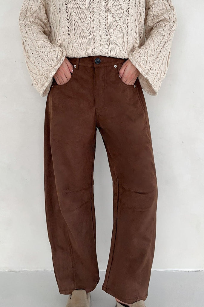 Nora Lightweight Vegan Suede Barrel Pants - Neutral Ground