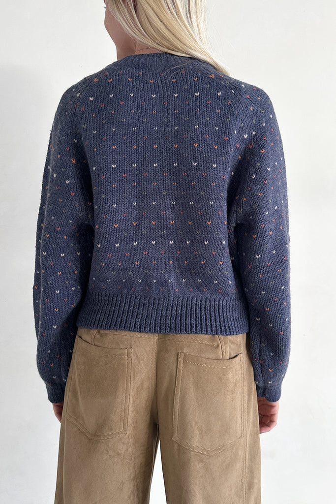 Flutter Button Down Hearts Cardigan in Navy