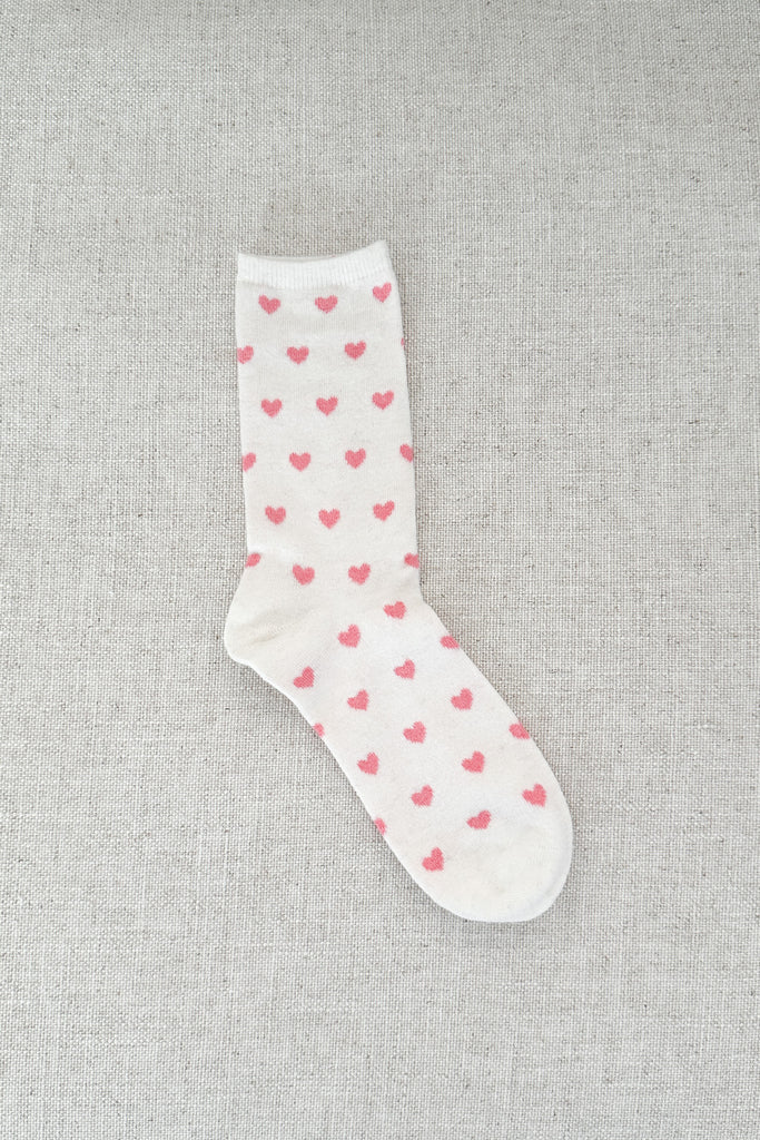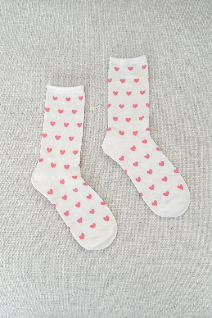 Tiny Heart Socks Cashmere Blend Crew Socks in White and Pink