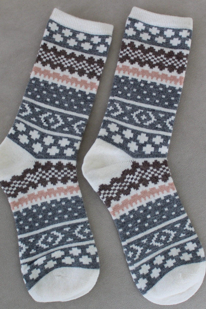 Aztec Faire Isle Cashmere Blend Crew Socks